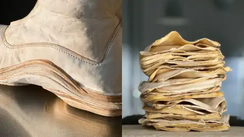 Уявіть собі цю співпрацю: з одного боку мікробіологи та дослідник-дизайнер Ларс Діттріх, які пораються зі своїми чашками Петрі, а з іншого — Марі Де Райк, головний швець оперного театру, яка звикла мати справу зі шкірою, колодками та традиційним ремеслом. Два абсолютно різних світи зійшлися, щоб змусити живий мікроорганізм набути форму функціонального взуття. На це знадобилося два роки. Два роки зусиль, щоб матеріал, який в природі росте пласкими шарами, трансформувався в об'єкт, здатний витримати вагу людини.