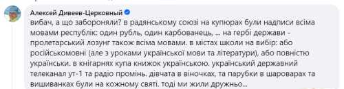 У відповідь Дівєєв-Церковний написав, що «за радянських часів ніхто нікому нічого не забороняв і всі жили дружно», чим викликав хвилю обурення підписників