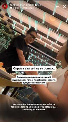 — Справа взагалі не в грошах… Вона почала виходити на емоції, підвищувати голос, перебивати, казати, що це зрозуміло. А я спокійно пояснювала, що клієнти мають знати правила ресторану, – поділилася Анна.