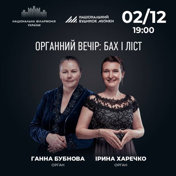 2 грудня концертну програму «Біх і Ліст», складену винятково із творів для органа, – представлять солістки Національного будинку музики Ганна Бубнова та Ірина Харечко.
