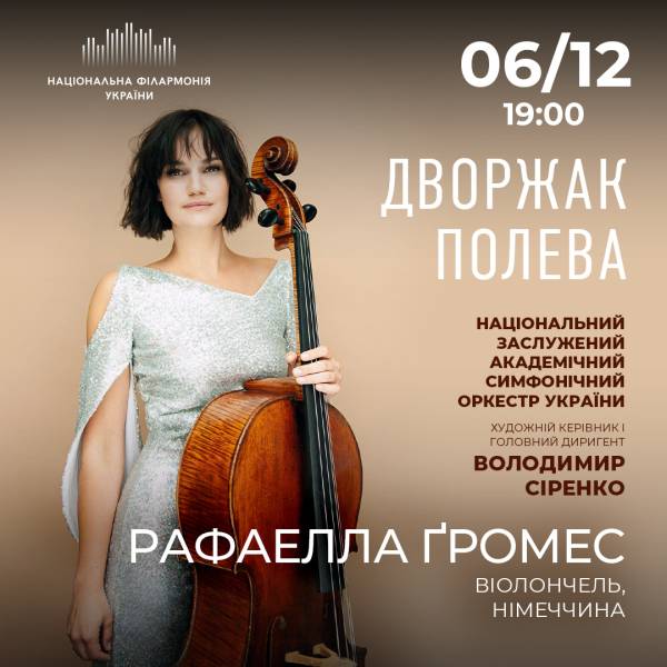 6 грудня, попри все, українській публіці знову випадає рідкісний шанс вітати на сцені Національної філармонії іноземних гостей. Цього разу це віолончелістка з Німеччини Рафаелла Ґромес, яка виконає разом із Національним симфонічним оркестром України під орудою Володимира Сіренка віолончельний концерт Антоніна Дворжака. Також у програмі – знаменита Восьма симфонія чеського класика та написаний минулого року твір сучасної української композиторки Вікторії Полевої «NOVA» для симфонічного оркестру, присвята мужності України.