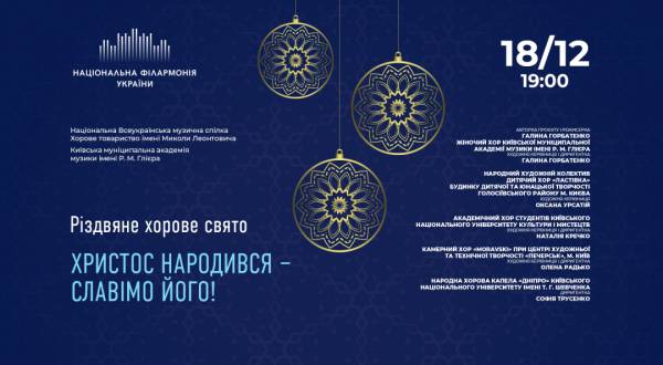 18 грудня на сцені Колонного залу НФУ відбудеться Різдвяне хорове свято «Христос народився – славімо його!» – авторський проєкт Галини Горбатенко, режисерки, художньої керівниці і диригентки Жіночого хору Київської муніципальної академії музики імені Рейнгольда Глієра.