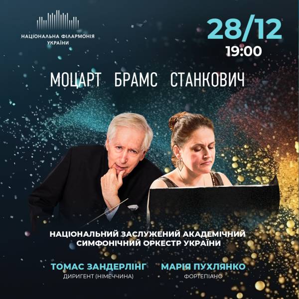 28 грудня у виконанні Національного симфонічного оркестру України звучатимуть святково-іронічна «Ханука» Євгена Станковича, написана понад 20 років тому на замовлення оркестру в Лас-Вегасі (США), Концерт № 24 для фортепіано з оркестром Вольфганга Амадея Моцарта – один з його найвидатніших і знакових у цьому жанрі, солісткою в якому виступить Марія Пухлянко. Завершить вечір Симфонія № 4 Йоганнеса Брамса, який цим твором підсумовує не тільки власний творчий шлях, а й загалом розвиток симфонічного жанру епохи Романтизму.
