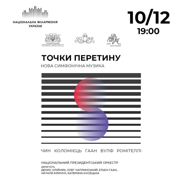 10 грудня Точки перетину: концерт нової симфонічної музики – фінальний концерт Диригентського воркшопу нової музики з Етьєном Гааном (Франція). Ідея перетину у концерті втілюється на різних рівнях. Поєднаються західноєвропейська та українська виконавські традиції, а також композиторські школи. Такі перетини дозволяють виявити своєрідність усіх учасників творчої співпраці, а разом з тим продемонструвати органічну спільність української та європейської музики, відкритість до діалогу та співтворчості.