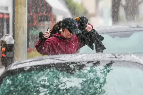 Знаменитість була одягнена в укорочене бордове худорлявість, чорні легінси та кросівки, а також чорну бейсболку з кольоровим лого «NY». Схоже, дощ застав знаменитість зненацька, і вона навіть не встигла зняти сонцезахисні окуляри і накинути на плечі ветровку, яку несла в руках.