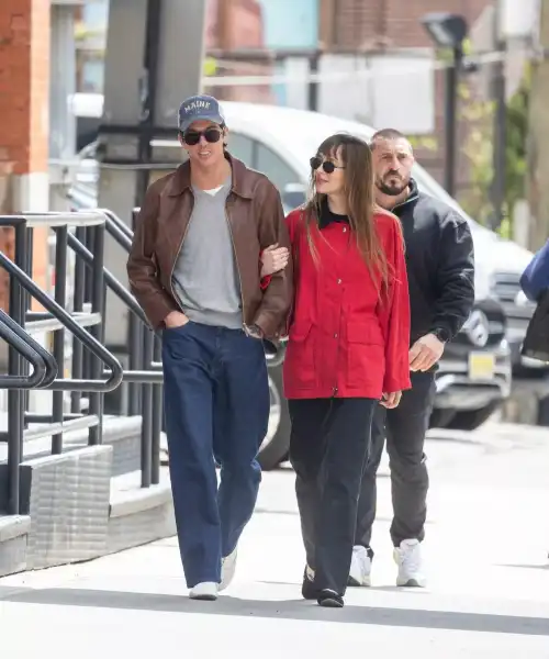 Дакота Джонсон з бойфрендом гуляють Нью-Йорком обійнявшись.