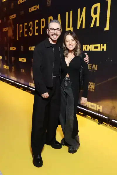 А потім привітав кохану вже зі сцени, представляючи “Резервацію” разом із колегами — Філіпом Янковським, Катериною Волковою, Олексієм Розіним, Миколою Шрайбером, Валерією Астаповою, Юрієм Насоновим, Антоном Артем'євим, Юлією Волковою, Олександром Лойє, та Ольгою Маке. На прем'єрі не змогла бути лише Поліна Гухман, яка виконала у серіалі одну з головних ролей. Замість неї на червоній доріжці позувала картонна фігура із зображенням актриси.
