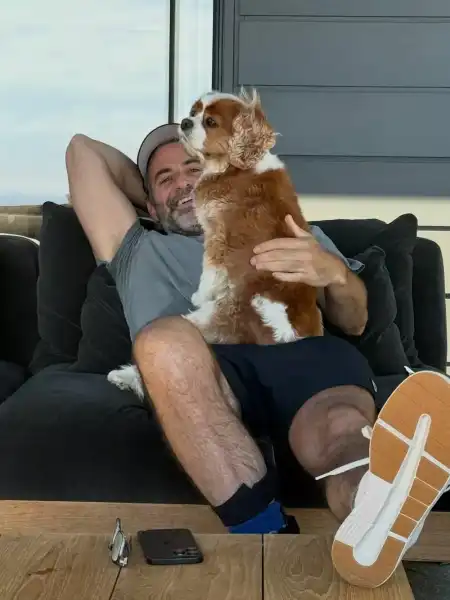 На новому знімку Дженніфер ніжно обіймає свого 50-річного бойфренда Кертіса, а також показала фото, де гіпнотерапевт відпочиває на дивані з собакою.