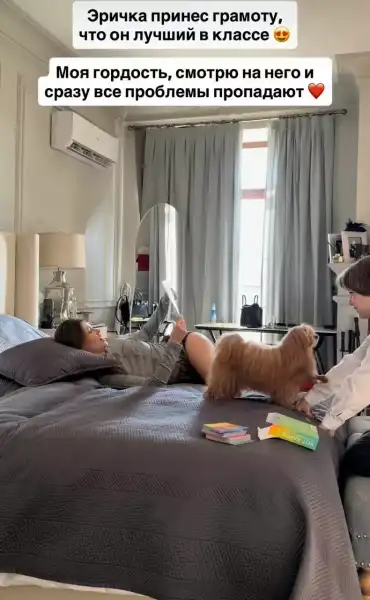 Слідом Наташа повідомила, що радують її у цей період лише досягнення сина. 9-річний Ерік, якого Наталка народила від чоловіка-режисера Марюса Вайсберга, ощасливив зіркову маму грамотою.