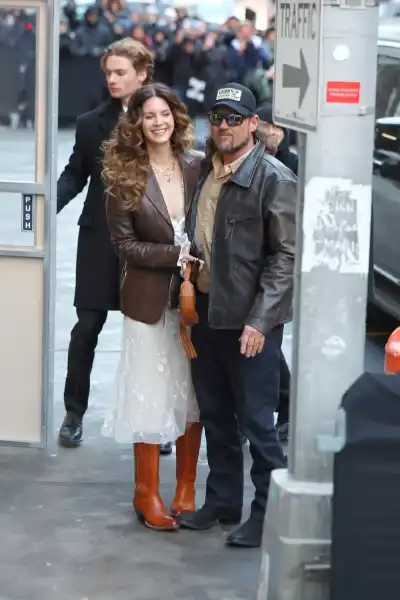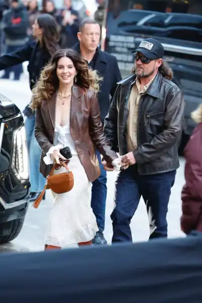 Дель Рей та її чоловік вибрали стильне вбрання, яке гармонійно поєднувалося одне з одним і відповідало класичному стилю бренду. Співачка позувала у коричневому шкіряному піджаку поверх повітряної білої сукні з довгими рукавами. Для світського виходу Лана обрала несподівану зачіску — якщо раніше артистку звикли бачити з ідеально покладеним прямим волоссям, цього разу Дель Рей віддала перевагу великим кучерям. Її чоловік Джеремі підібрав стильний образ з бежевої сорочки, яку поєднував із темно-синіми брюками та шкіряною коричневою курткою. Перегляньте образи інших зірок на показі Ralph Lauren.