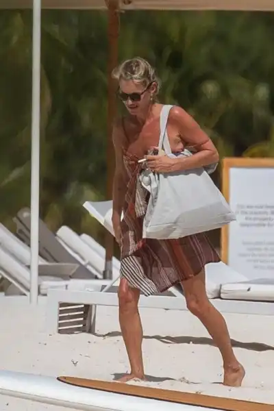 Лілу та Кейт сфотографували, поки ті розташовувалися на шезлонгах. Обидві одягли міні-бікіні: Кейт обрала купальник відтінку запорошеної троянди, тоді як 23-річна Ліла віддала перевагу насичений кавовий колір. Пізніше Кейт загорнулася в яскраве смугасте парео, взяла полотняну сумку-шоппер і відійшла у свої справи.