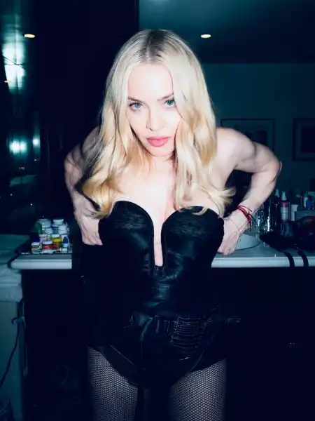 У вівторок, 24 лютого, Мадонна поділилася новими фото в екстравагантному образі: чорному корсеті та сітчастих панчохах.