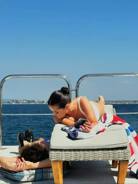 Селена Гомес та Бенні Бланко проводять зиму в екзотичних краях: співачка поділилася моментом їхнього відпочинку на яхті у четвер, 19 лютого. 33-річна артистка позувала у білому бікіні, обіймаючи свого чоловіка у басейні.