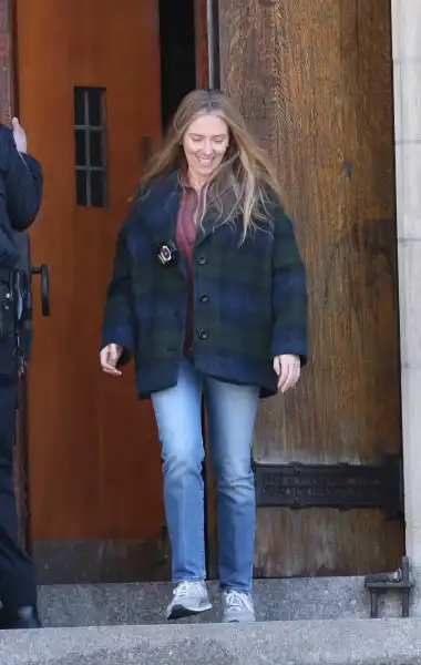 Скарлетт Йоханссон прибула на знімальний майданчик нового фільму “Вигоняючий диявола”. Актриса вийшла з автомобіля у супроводі команди та попрямувала до знімального павільйону. Скарлетт вирішила надіти у прохолодний весняний день теплу стьобану куртку в клітку, яку поєднувала з блакитними джинсами та курно-рожевою блузкою. Зірка розпустила свої фірмові світлі локони та відмовилася від макіяжу.
