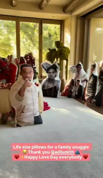 Джада Пінкетт-Сміт розповіла, що її чоловік Вілл Сміт подарував їй подушки в натуральну величину із зображеннями всіх членів їхньої родини, у тому числі й його самого.