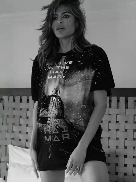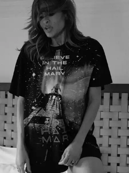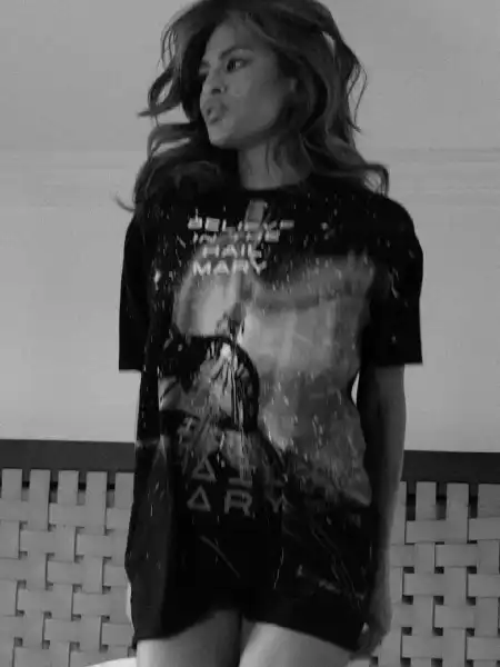 Єва Мендес віддала шану своєму партнеру Райану Гослінгу та його майбутньому фільму «Аве Марія», опублікувавши в соцмережах фотографію, на якій вона позує у футболці із постером фільму.