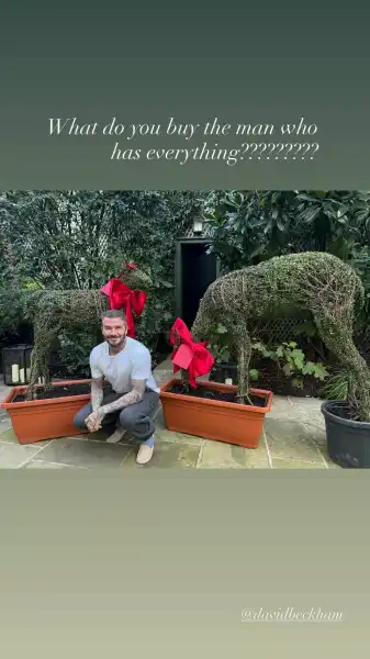 У своєму акаунті в соцмережах Вікторія Бекхем пожартувала, що подарувати “людині, яка має все”. У результаті вона здивувала Девіда Бекхема, який отримав лицарське звання 2025 року, парою топіаріїв у формі собак. А то їй зробив трояндочки з вирощеної у власному саду полуниці та тости із сердечками із джему.