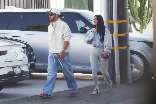 41-річний автогонщик, який проживає в основному в пентхаусі в Монако, був одягнений у повсякденний образ: пуловер кремового кольору та мішкуваті сині джинси. На 45-річній зірці реаліті-шоу була блідо-сіра куртка та легінси її бренду SKIMS.
