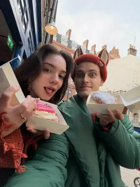 На фото вона позує на тлі Біг-Бена у Лондоні, а також разом із нареченим насолоджується свіжими пончиками. До речі, до галереї потрапили і домашні фото пари, тож в Англії вони явно провели не весь місяць.